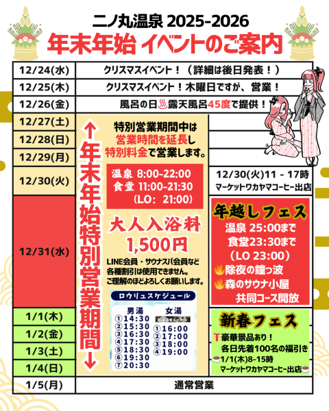 2025-2026 二ノ丸温泉年末年始イベントのお知らせ