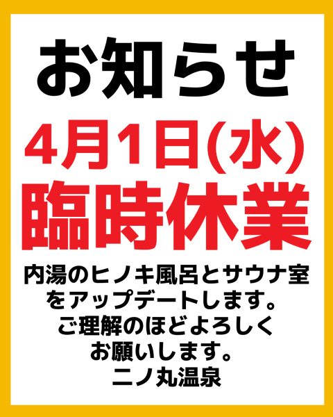 2026年4月1日(水)臨時休業